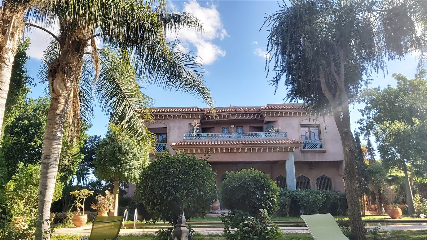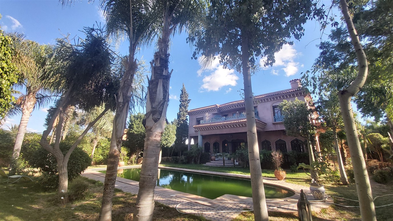 GRANDE DEMEURE BOURGEOISE ENTOUREE D'UN PARC LUXURIANT ET PISCINE DANS UN SUPERBE STYLE TRADITIONNEL MAROCAIN ( EN VENTE / A ACHETER ) SITUEE EN VILLE DE MARRAKECH DANS LE QUARTIER DE L'AGDAL.