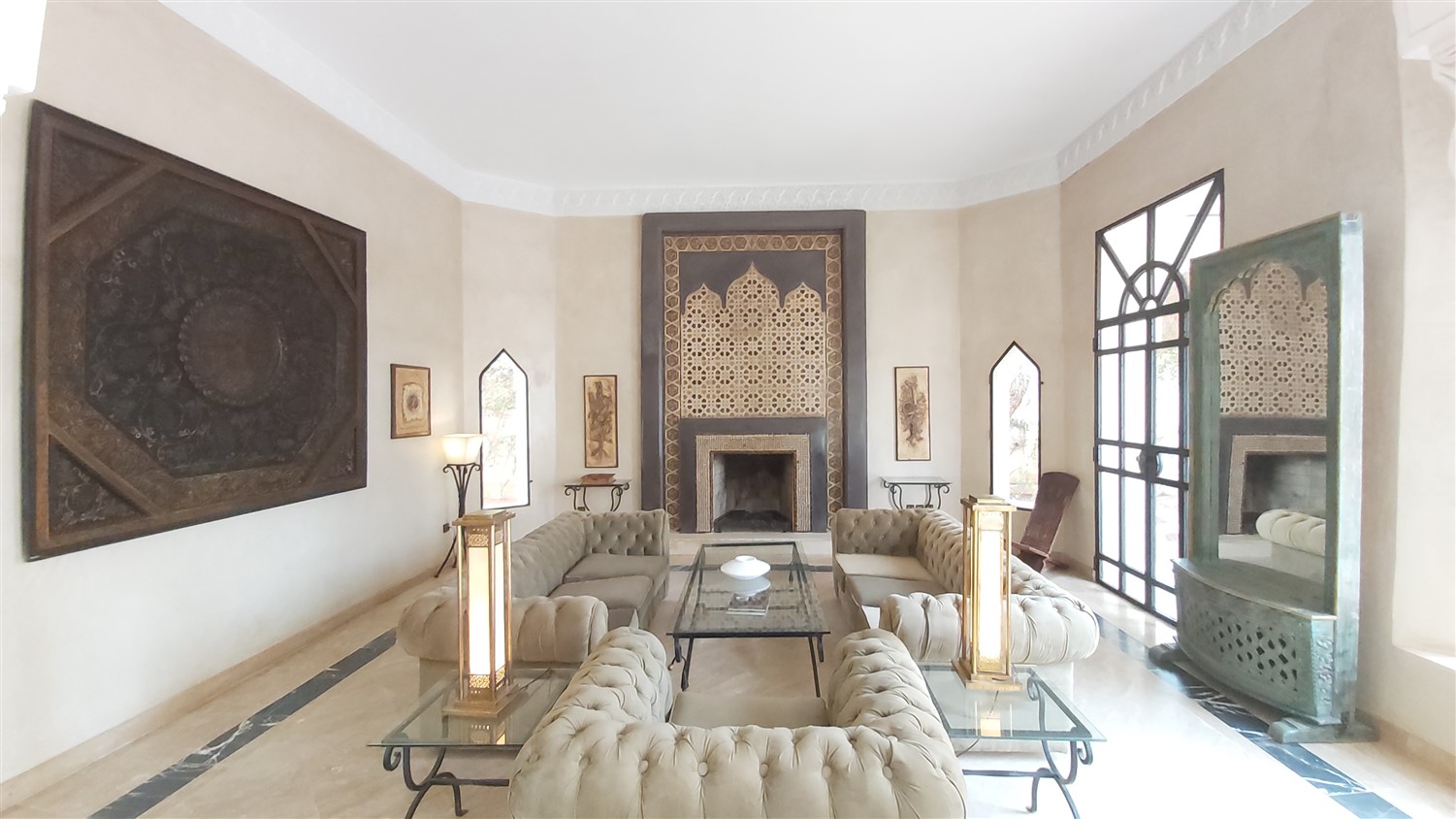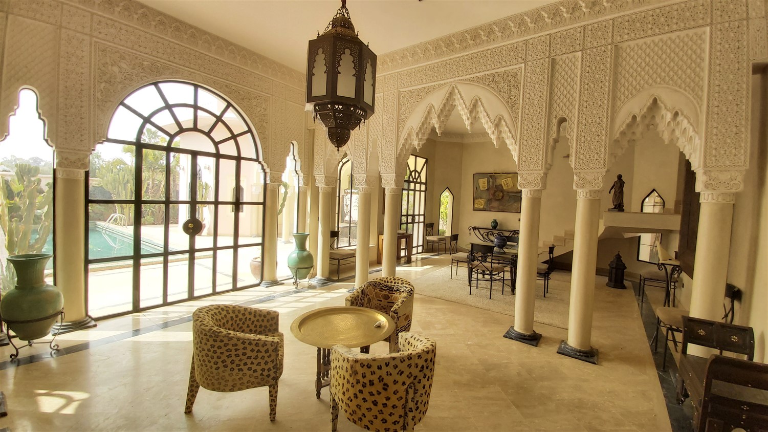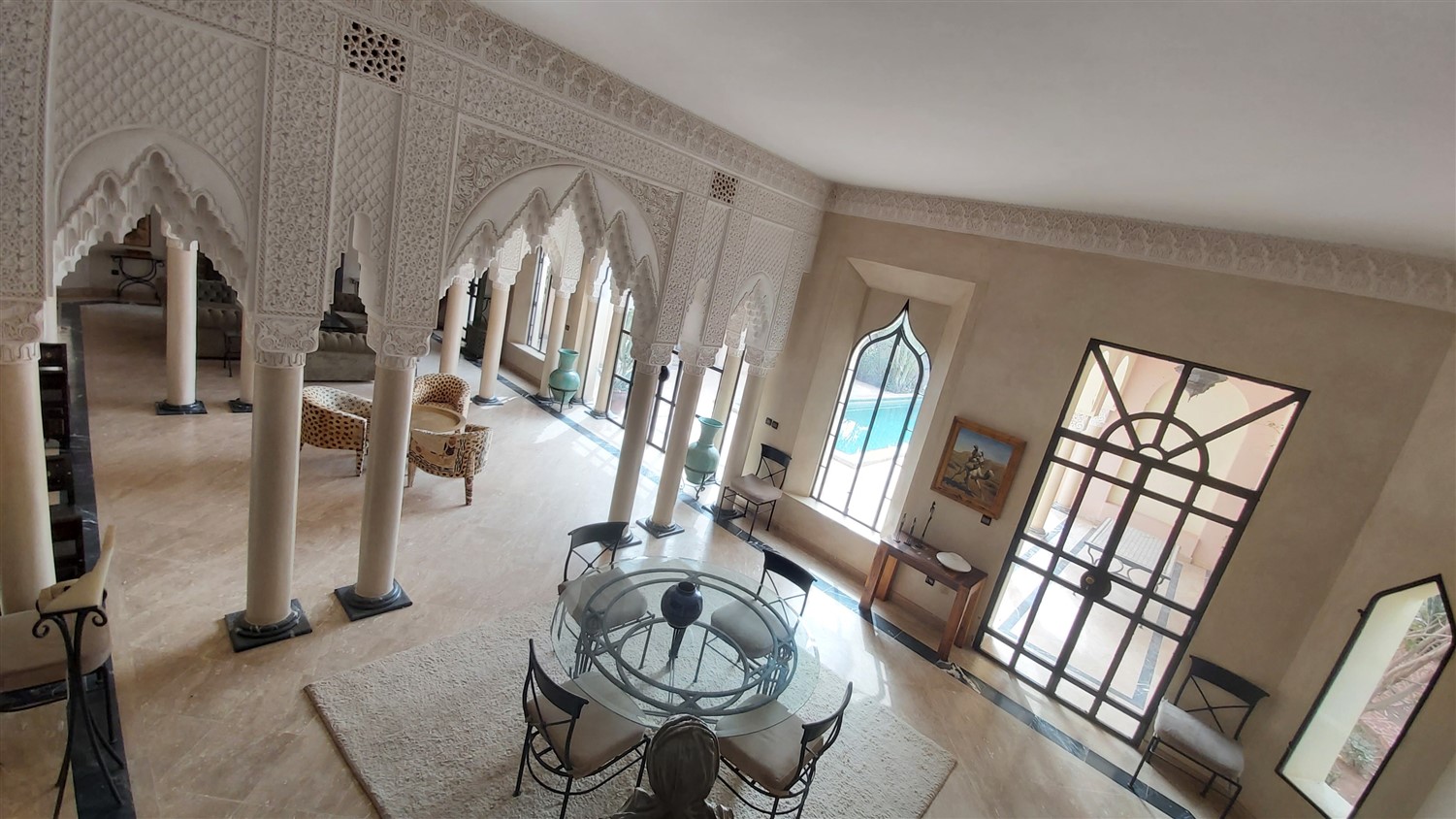 CETTE LUXUEUSE VILLA DIRECTEMENT INSPIREE DU PALAIS DE L'ALHAMBRA DE GRENADE - AYANT ETE CONCUE ET AYANT APPARTENU A UN ELEVE DU PEINTRE SALVADOR DALI - EN VENTE ( A ACHETER ) EST SITUEE SUR LE GOLF HISTORIQUE D'AMELKIS 1 A MARRAKECH ROUTE DE OUARZAZATE : un des trois golfs les plus renommés.