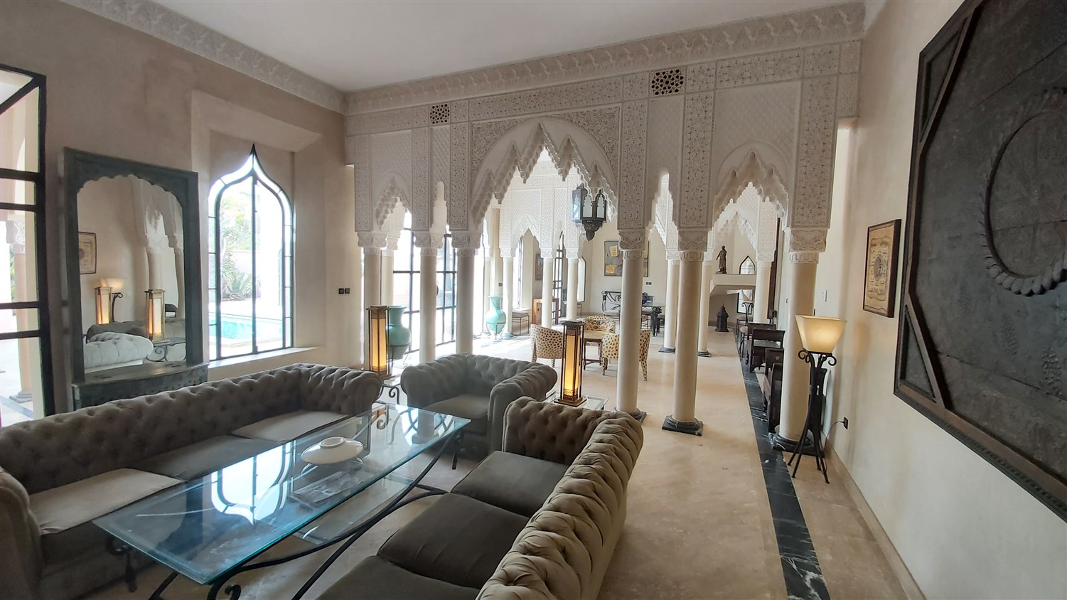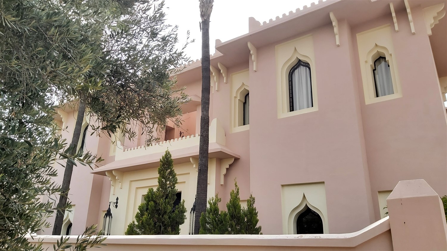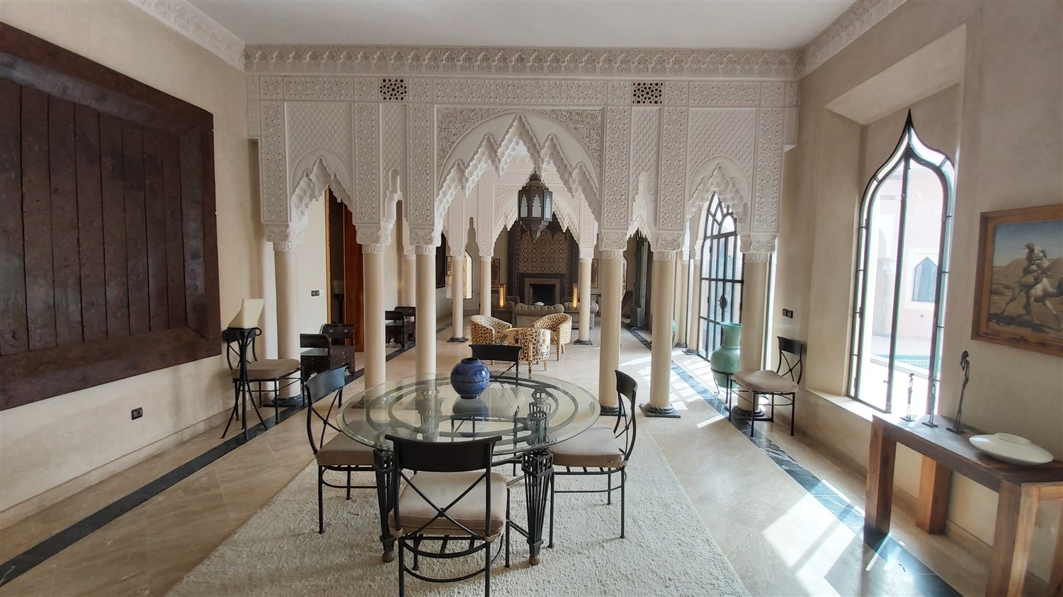 CETTE LUXUEUSE VILLA DIRECTEMENT INSPIREE DU PALAIS DE L'ALHAMBRA DE GRENADE - AYANT ETE CONCUE ET AYANT APPARTENU A UN ELEVE DU PEINTRE SALVADOR DALI - EN VENTE ( A ACHETER ) EST SITUEE SUR LE GOLF HISTORIQUE D'AMELKIS 1 A MARRAKECH ROUTE DE OUARZAZATE : un des trois golfs les plus renommés.