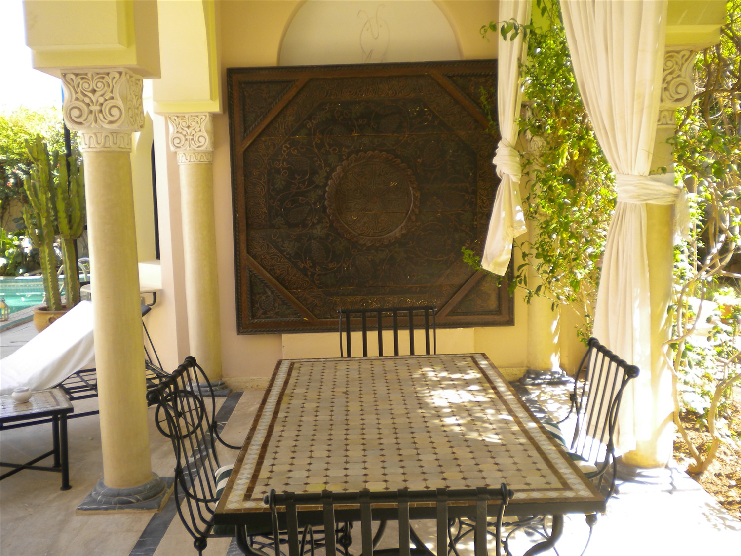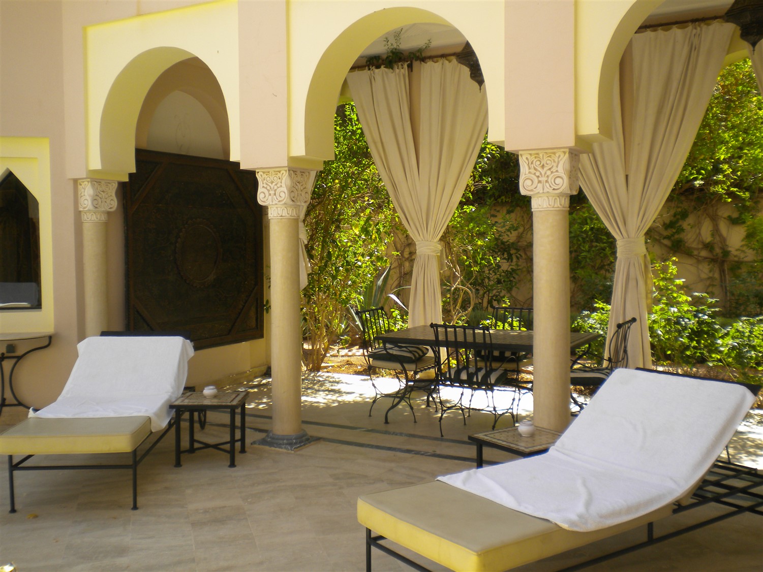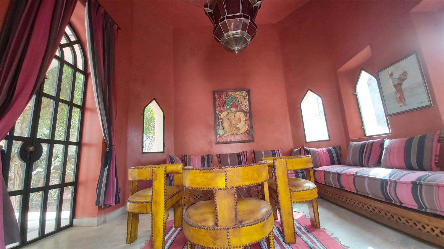 JARDIN : 1 SALON MAROCAIN COSY DANS UN STYLE ORIENTALISTE / 1 HAMMAM AVEC SA SALLE DE REPOS ET DE MASSAGE / joliment arboré .