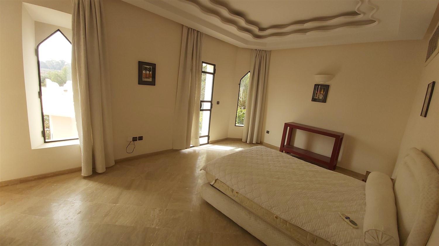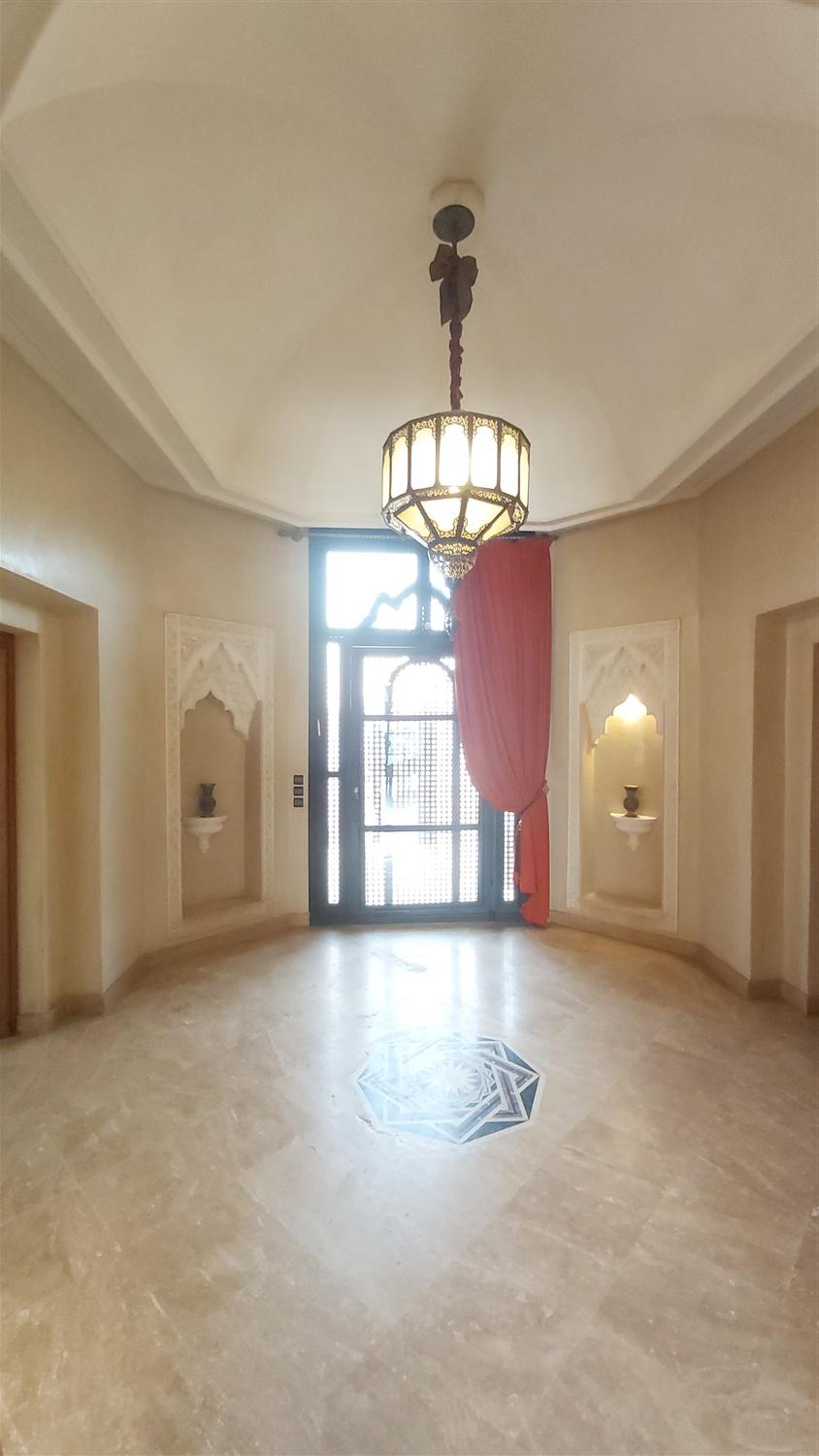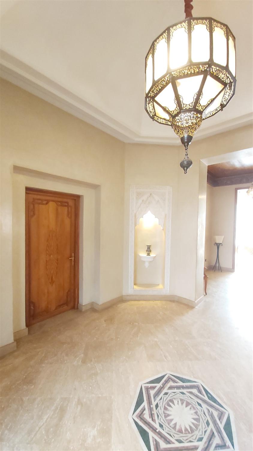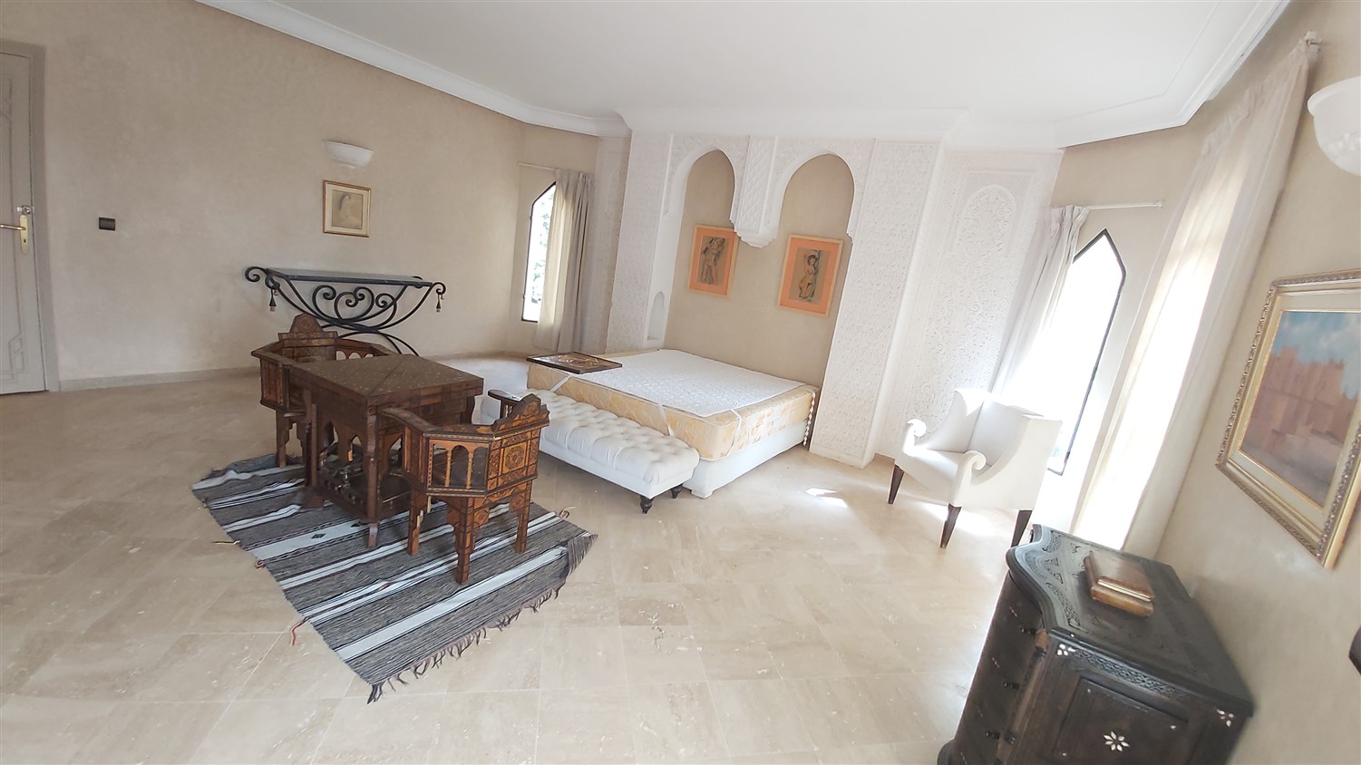 interphone / clim réversible split-system / électricité (inclus eau chaude) par radeema et attentes panneaux solaires sur toit du hammam / 3 places de garage non couvertes / villa construite en 2004 / 1 buanderie et 1 chambre/SDB pour le personnel en dépendance.