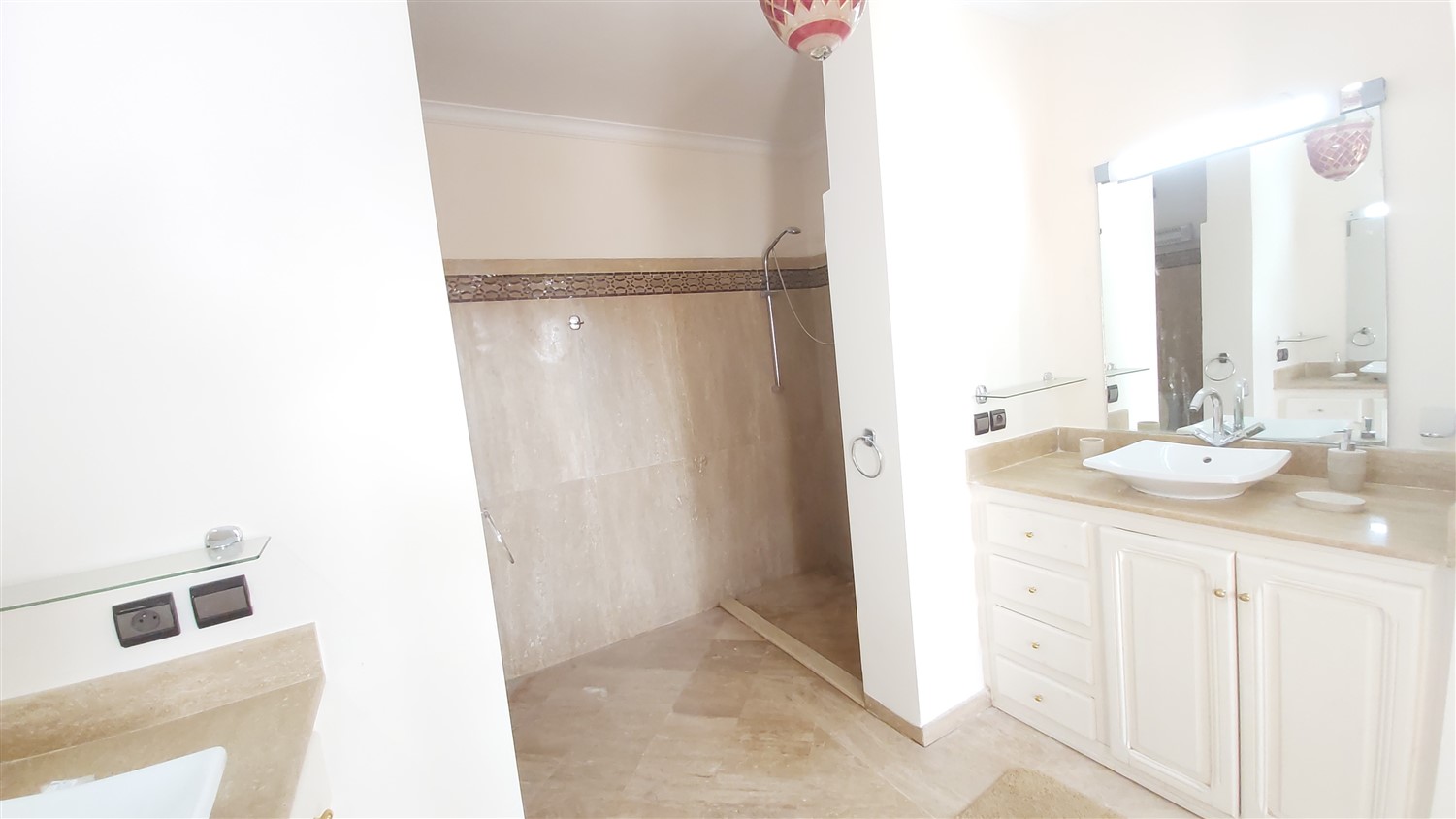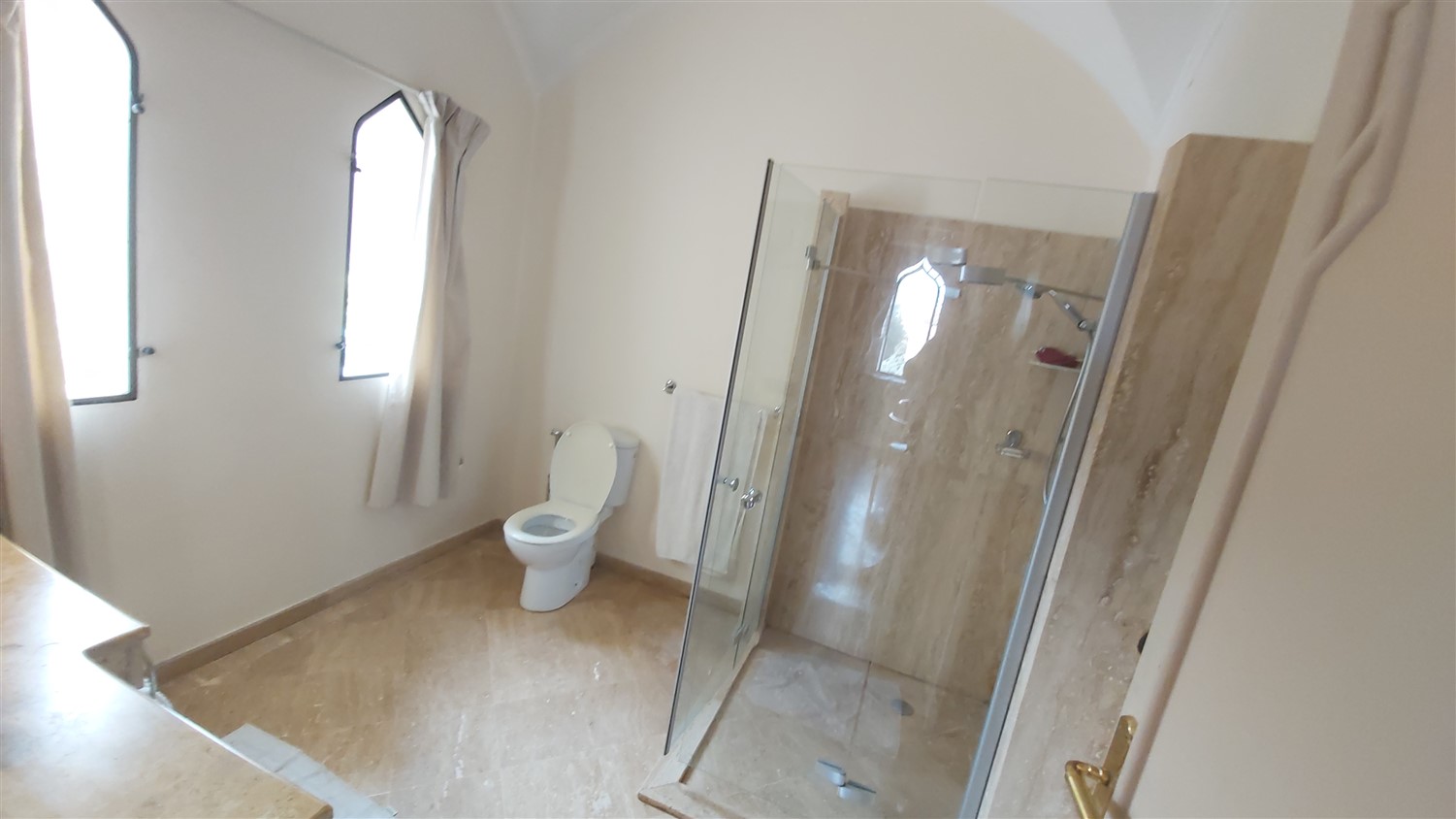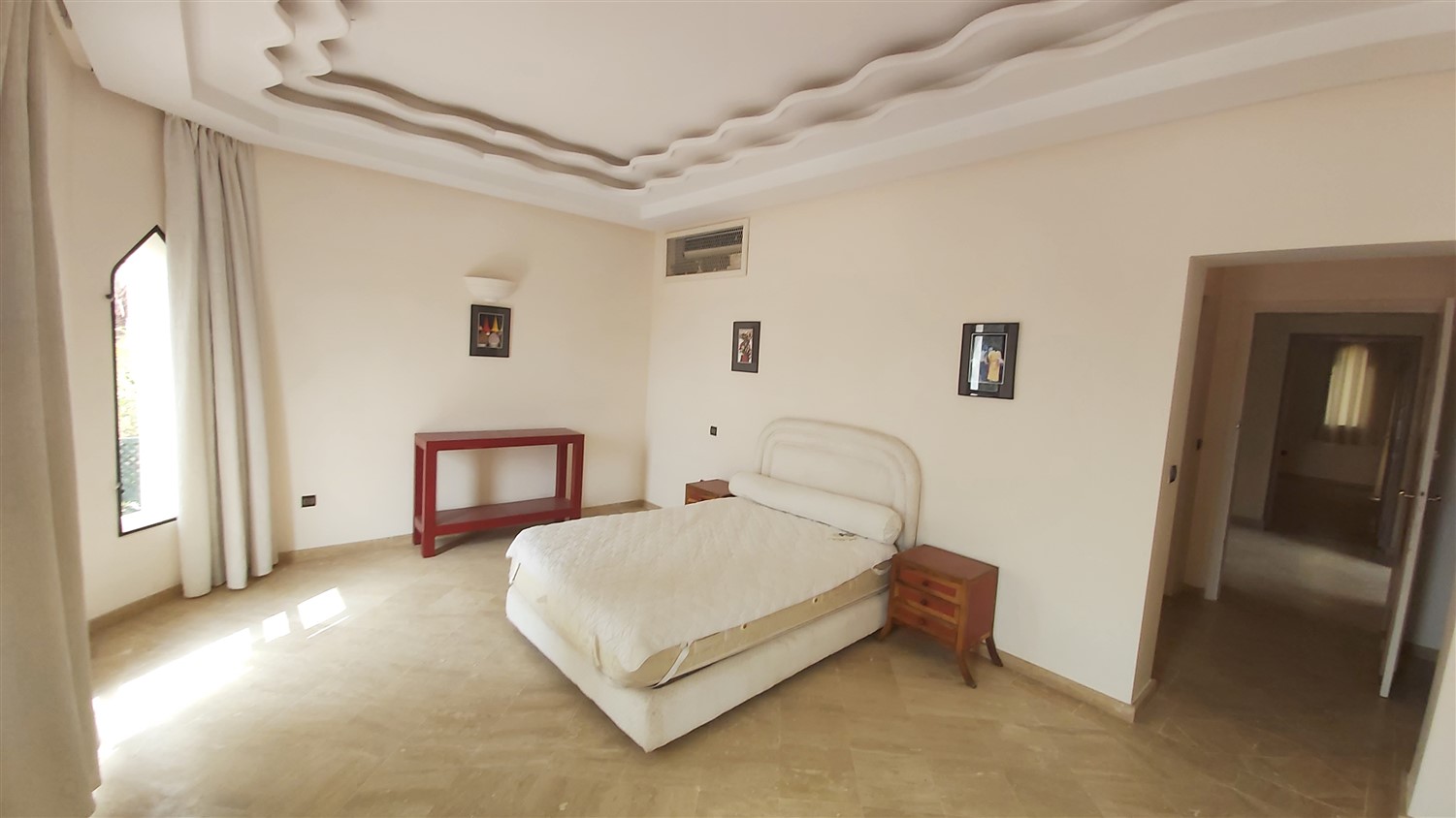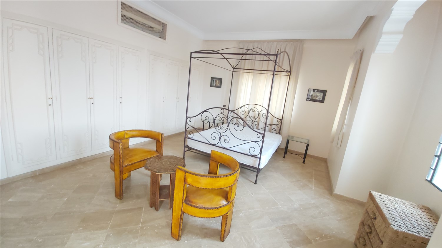 interphone / clim réversible split-system / électricité (inclus eau chaude) par radeema et attentes panneaux solaires sur toit du hammam / 3 places de garage non couvertes / villa construite en 2004 / 1 buanderie et 1 chambre/SDB pour le personnel en dépendance.